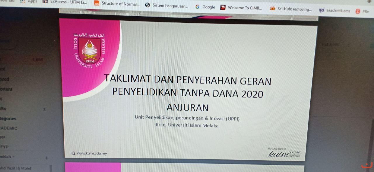 26 Februari 2020-Taklimat dan Penyerahan Geran Penyelidikan Tanpa Dana 2020 Anjuran Unit Penyelidikan, Perundingan & Inovasi (UPPI) _3
