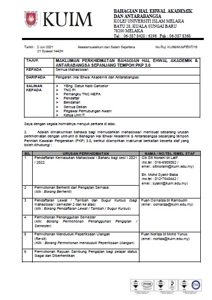 Alhamdulillah, as high as gratitude to Allah S.W.T., because with His permission, Universiti Islam Melaka (UNIMEL) is still Melaka's first Islamic Higher Education Institution for male and female students pursuing Foundation, Diploma, Bachelor's Degree, Master's Degree, and Doctor of Philosophy degrees (PhD).